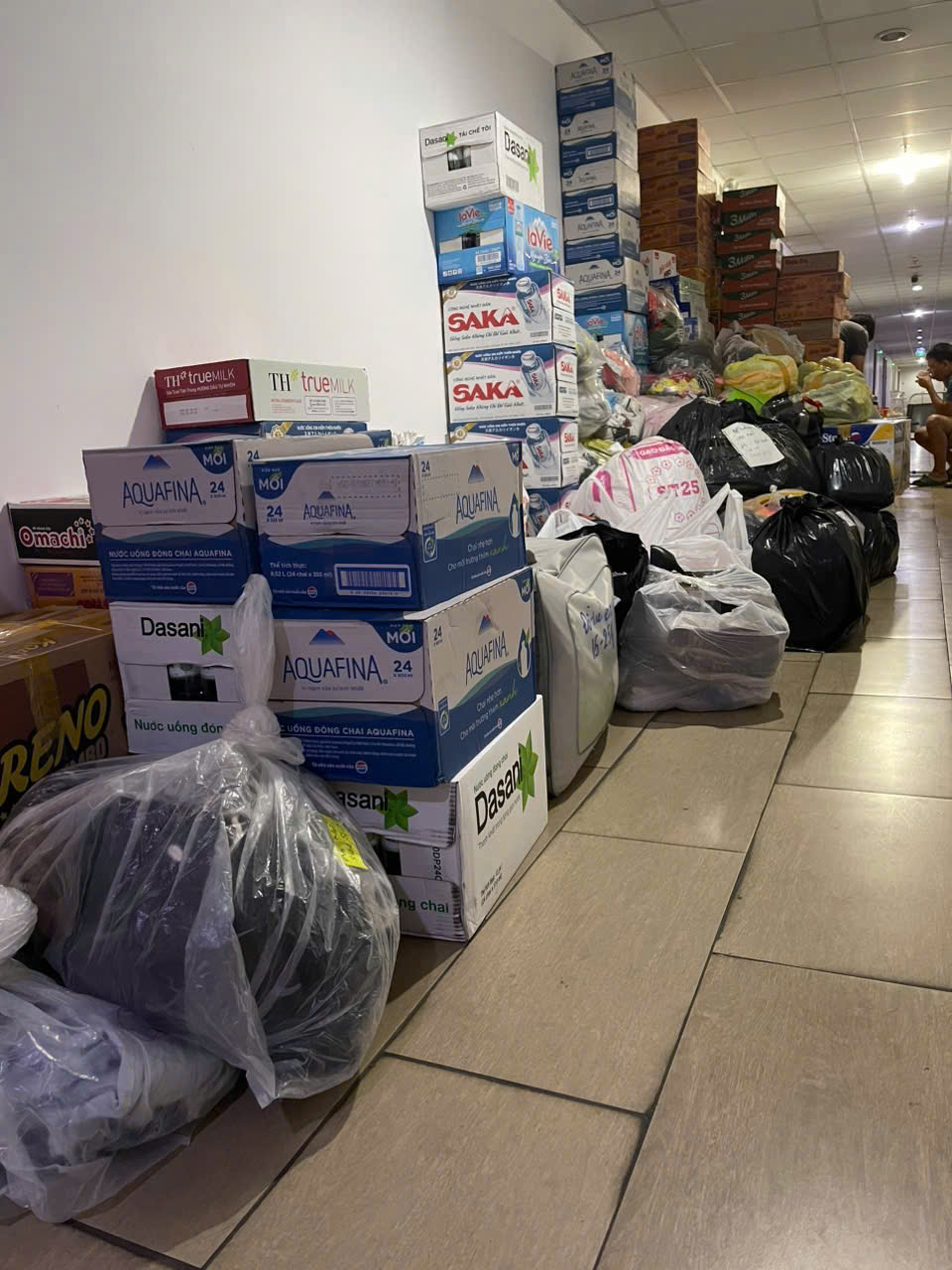 Hàng hóa hỗ trợ từ cư dân được chuyển đến đều đặn: từ thực phẩm thiết yếu, nước uống, cho đến áo phao, vật dụng bảo hộ… Số lượng tiếp nhận đã tăng nhanh chỉ trong thời gian ngắn và vẫn đang tiếp tục được chuẩn bị để vận chuyển đến các địa phương bị ảnh hưởng.